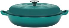 Perfect Home zománcozott öntöttvas szeletsütő fedővel 30 cm, türkiz (16640) Kiváló anyag és dizájn: A Perfect Home zománcozott öntöttvas szeletsütő a konyhák kedvence, hiszen a tartósság és az esztétikum tökéletes kombinációja. A zománcozott öntöttvas anyag biztosítja a kivételes hőmegtartást és -eloszlást, így minden fogás tökéletesen sikerülhet. Funkcionál