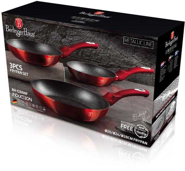A 3 részes serpenyő szett egy igazán praktikus és elegáns választás minden konyhába. A Metallic Line Burgundy Edition tagjai közé tartozó három serpenyő kovácsolt alumíniumból készült, amelynek köszönhetően hosszú élettartamúak és egyenletes hőeloszlást biztosítanak. A leírásban részletezett tulajdonságoknak és előnyöknek köszönhetően ez a szett elengedhetetle