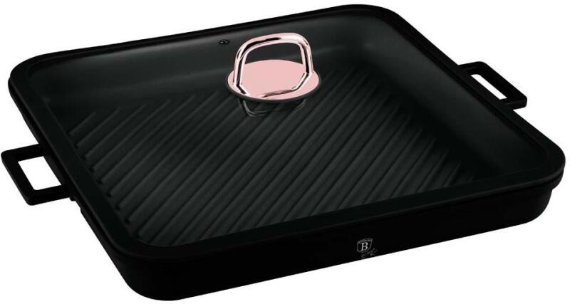 Berlinger Haus tapadásmentes négyszögletes grill serpenyő fedővel, 34 cm - BH-7789 A Berlinger Haus tapadásmentes négyszögletes grill serpenyő fedővel (BH-7789) tökéletes választás a grillezés szerelmeseinek. A 34 x 4,5 cm méretű serpenyő öntött alumíniumból készült, ami kiváló hőelosztást biztosít, míg a tartós titánPro bevonat garantálja, hogy az étel ne ragadjo