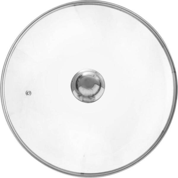 Üvegfedél fém fogantyúval és lyukkal a felesleges gőz távozásához .