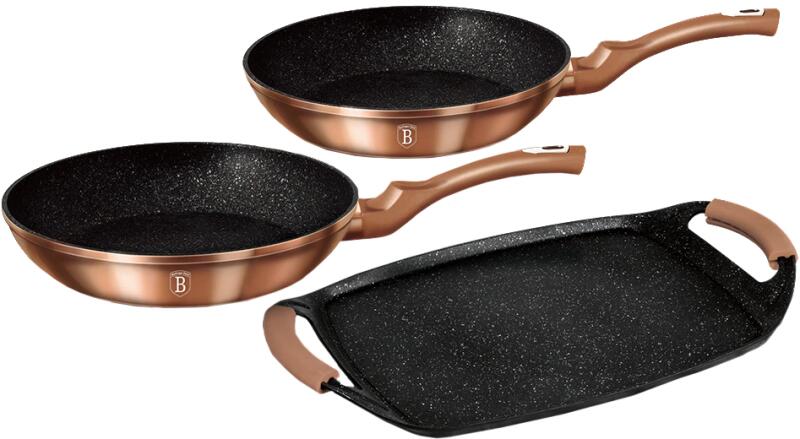 Berlinger Haus Metallic Rosegold Line 3 részes serpenyõ- és grillkészlet márvány bevonattal