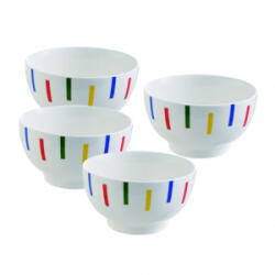 Tulajdonságok:UNITED COLORS OF BENETTON 4 részes reggeliző tál szett. Mosogatógépben mostható, mikrózható650 ml űrtartalomMéret: 14,3 x 8 cmAnyag: Porcelán New bone
