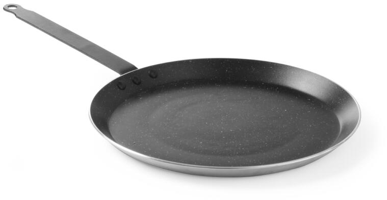 Hendi Palacsintasütő serpenyő, ø280x(H)25mm. Tartós alumíniumból készült, Minden főzőfelületen használható: indukció, gáz, elektromos, kerámia, akár sütőben is használható. Az alumínium egyenletes hővezetést biztosít, a serpenyő gyorsan használatra kész. A fogantyú epoxi bevonatú acélból készült. A márvány tapadásmentes bevonat magas hőmérséklet-állóságg