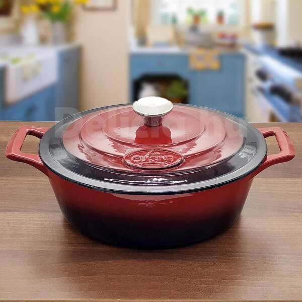 Kiváló minőségű, zománc bevonatú, vastagfalú, súlyos öntöttvas lábas. Az öntöttvas edényekben fedő alatt, kevés folyadékkal, hosszú ideig, alacsony hőmérsékleten főzhetjük kedvenc ételeinket. A súlyos fedő alatt az alapanyagok a saját gőzükben párolódnak, az ízek és a nedvesség nem távozik. Az edény nemcsak főzésre, hanem tálalásra is alkalmas, az ételt ho