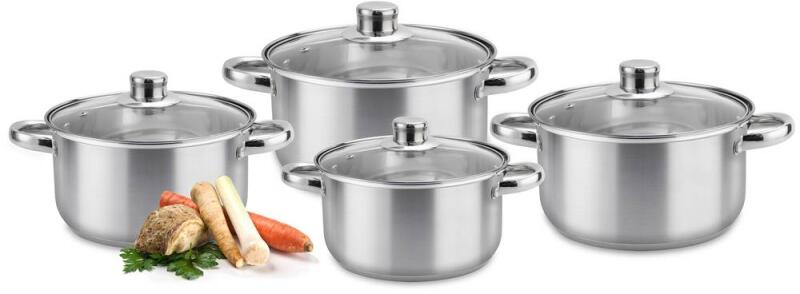 Klasszikus edénykészlet. Az edények kiváló minőségű rozsdamentes acélból készültek, garantálják a hosszú távú használatot és a megbízhatóságot minden konyhában. Az edénykészlet többrétegű indukciós aljjal rendelkezik, amely egyenletes hőeloszlást biztosít, ami csökkenti a főzési időt és energiát takaríthat meg vele. A belső kapacitásmérleg felbecsülhetetl