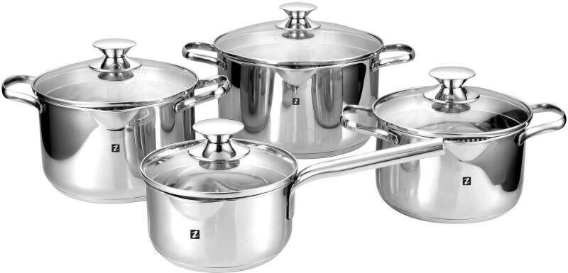 Zokura Inox edénykészlet, 8 darab, indukció Fedéllel ellátott edény: átmérő 24 cm, űrtartalom 6,1 l;Fedéllel ellátott edény: átmérő 20 cm, űrtartalom 3,9 l;Fedéllel ellátott edény: átmérő 18 cm, űrtartalom 2,6 l;Fedeles edény mártásnak: átmérő 16 cm, űrtartalom 1,7 l. Karbantartási utasítások Az edényeket a mosogatógépbe lehet helyezni.