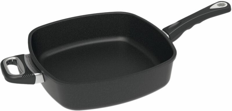 Az Ambition Darkwood mélyserpenyő 26 cm átmérőjű, elegáns fekete színű és sötét fa fogantyúval rendelkezik. Kovácsolt alumíniumból készült, ellenáll a deformációnak. Belül arany színű részecskéket tartalmazó Qualum Basic Stone Edition tapadásmentes bevonat borítja, amely rendkívül kopásálló. A kényelmes fogantyú Soft Touch anyaggal van bevonva. A vastag falak é