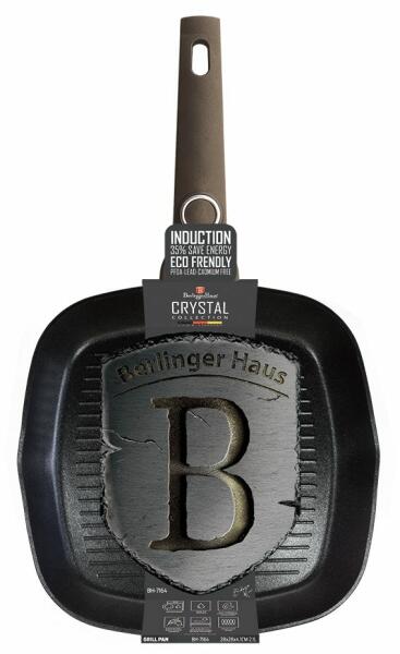 Gyártó: Berlinger Haus Modell: Crystal Collection Grill 28 cm (BH/7164) Leírás: A Crystal Collection Grill serpenyő (28 cm) a konyhád elengedhetetlen kelléke lesz. Egyedülálló tulajdonságai és elegáns stílusa garantáltan lenyűgözi majd a családod és barátaid, miközben megkönnyíti a főzést és takarítást. Főbb tulajdonságok és előnyök Anyag A serpenyő kovácsolt alu