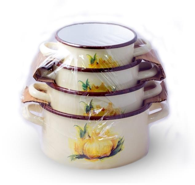Zománcozott edénykészlet bézs, 4 darabos. Teljes zománcozott edény családot kínálunk egy csomagban, 4 különböző méretben, 14, 16, 18, 20 cm átmérőjű edények, fedő nélkül.