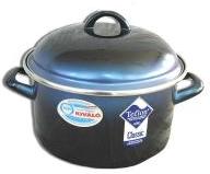 Bonyhádi Elit zománcozott teflonos fazék + fedő 16 cm (514016045). A Bonyhádi kék árnyalt, zománcozott fazék az Elit termékcsalád tagja. A fazék űrtartalma 1,75 liter, átmérője 160 mm, magassága 104 mm. A fazékbelső teflonos felületű, az edény külső részén pedig fekete - kék árnyalt dekoráció található. A magas fedő is zománcozott fémből, fémfüllel készült.