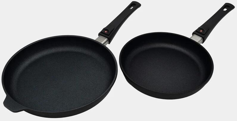 SwissDiamond 2 darabos indukciós, gyémánt felületű serpenyő készlet levehető fogantyúval 24 és 28 cm átmérővel, fedél nélkül, egész életre szóló garanciával. Most a legújabb verzióban, levehető fogantyúval, aminek köszönhetően könnyen elhelyezhető, így értékes tárhelyet takaríthat meg. MERT A MINŐSÉG SZÁMÍT Fedezze fel a Swiss Diamond XD kollekció legújabb
