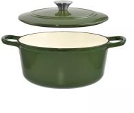 Perfect Home zománcozott öntöttvas lábas fedővel 25cm, zöld (11862) A Perfect Home 3,5 literes zománcozott öntöttvas lábas fedővel ideális választás mindennapi főzéshez, akár szabad tűzön, gáz- illetve elektromos tűzhelyen, sütőben vagy kemencében. Kiváló hőelosztási képességének köszönhetően a főzés egyenletes és hatékony, a zománcozott bevonat pedig nemcsak