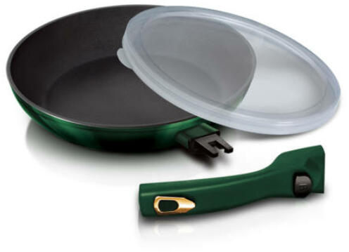Gyártó: Berlinger Haus Modell: Emerald Collection 24 cm (BH/6087) Leírás: A Serpenyő levehető nyéllel (24 cm) az Emerald Collection termékcsalád tagja, mely a konyhai sütés-főzésben nyújt praktikus és elegáns segítséget. Ez a kovácsolt alumíniumból készült serpenyő Ø24*4,8 cm méretével és 1,7 literes űrtartalmával ideális választás a mindennapi használatra, legyen