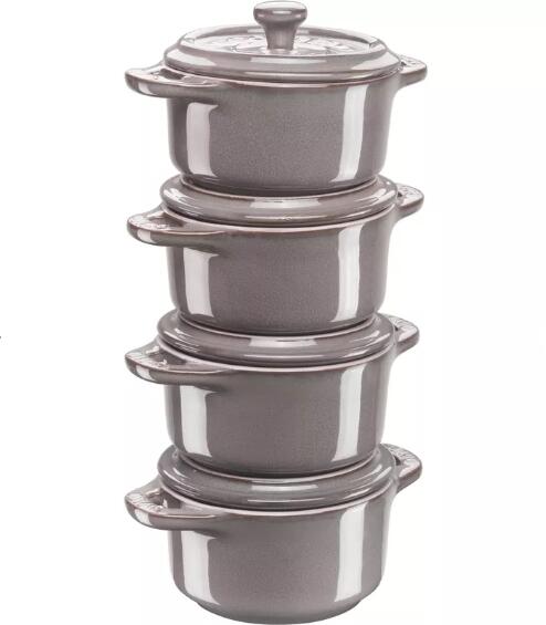 Varázsoljon gyors és ízletes ételeket családja vagy barátai örömére! A Staub kerámia sütőtál időtlen dizájnja és praktikus funkciói segítenek ebben. 4 darabos sütőedény készlet hagyományos öntöttvas cocotte edény kialakításában a következőktől Staub a tartós máz könnyen tisztítható és ellenáll a sérüléseknek alkalmas mosogatógépbe, hagyományos sütőbe
