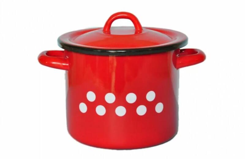 Zománcozott fazék piros pöttyös 10L. Az edény egyenletes és kiváló hőelosztási képességgel rendelkezik, így az étel egyenletesen fő meg. Az edény elektromos, gáz, kerámialapos főzőlapon használható. Vigyázzunk a zománcozott felület épségének megőrzésére, karcosodást okozó eszközzel ne használjuk! Javasolt fakanál, illetve műanyag eszközök használata a kiszed