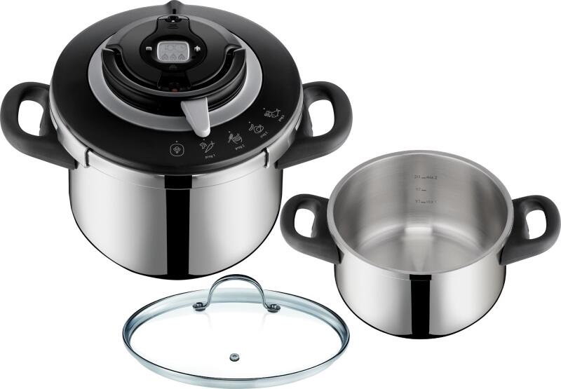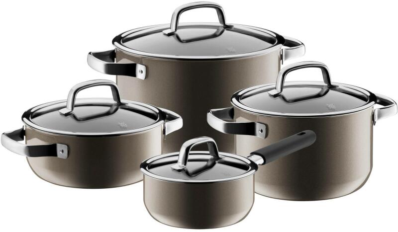 A FUSIONTEC WMF edénykészlet, 4 darabos a kövektezőket tartalma: Lábas Ø 20 cm, térfogat 2,4 l, üvegfedővel, termékkód: WM0514575290 Fazék Ø 20 cm, térfogat 3,7 l, üvegfedővel, termékkód. : 0514375290 Fazék Ø 24 cm, térfogat 6,4 l, üvegfedővel, termékkód. : 0514475290 Nyeles lábas Ø 16 cm, térfogat 1,3 l, üvegfedővel, termékkód: WM0515275290