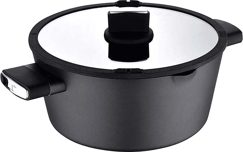 Inoxibar rozsdamentes lábas, tapadásmentes bevonattal 24 cm fedővel Absolute Black Range. Tapadásmentes, mérete: 24 cm. Réteg: 6mm vastag, 4 réteggel ellátott. Rétegek az aljától sorolva: rozsdamentes alj, öntött alumínium réteg, középső réteg és tapadásmentes bevonat. Absolute Black Range, fekete fogantyúval. A tapadásmentes felületet a GREBLON német technológia biztosí