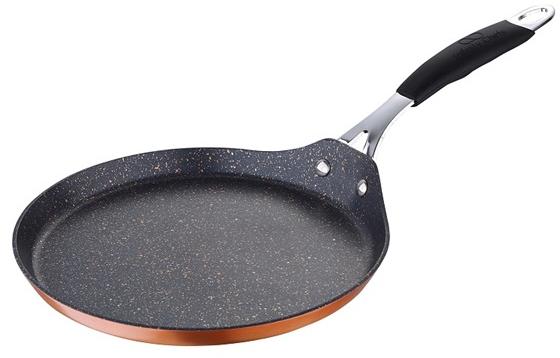 Öntött alumínium palacsintasütő bakelit nyéllel. Alkalmas gáz, elektromos, kerámialapos és indukciós tűzhelyen való használatra, valamint sütőbe is tehető termék. Kiváló minőségű, strapabíró palacsintasütő. PFOA mentes Titánium tapadásmentes bevonattal ellátott termék. A QuanTanium bevonatba kevert titán-részecskék hatására a serpenyő kiváló karcállóságot k