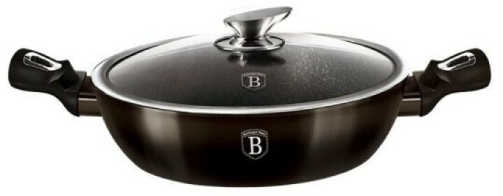 Gyártó: Berlinger Haus Modell: BH 6608 Leírás: A Metallic Line Shiny Black Edition egy kiváló választás a modern konyhák számára, amely eleganciát és stílusos megjelenést biztosít. Egyedi kovácsolt alumíniumból készült alacsony lábas fedővel (2,3 L), amely ideális méretet és tulajdonságokat kínál a mindennapi főzéshez. Főbb tulajdonságok és előnyök Anyag A ková
