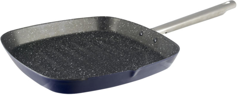 Bergner San Ignacio Habitex Grill serpenyő zománcozott öntöttvas 2 rétegű tapadásmentes bevonattal 28 x28 cm rozsdamentes fogantyúval. A zománc színe: királykék. Quantum 2 bevonattal. Minden főzőfelületen használható: kerámia, indukciós, elektromos, gáz. Származási hely: Európa. Europe.