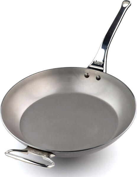 AMineral B Element PRO acél serpenyő egyszerű kivitelben készült, és szegecselt öntött acél fogantyúval rendelkezik, amelyen egy lyuk van a felakasztáshoz. A serpenyőket gyártó francia de Buyer cégvilágszerte elismert, különösen a professzionális szférában, ahol az acélserpenyők nagyon népszerűek a húsok vagy zöldségek sütésekor nélkülözhetetlen tulajdonságaik mi