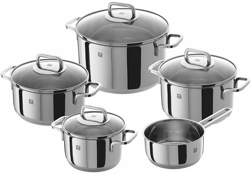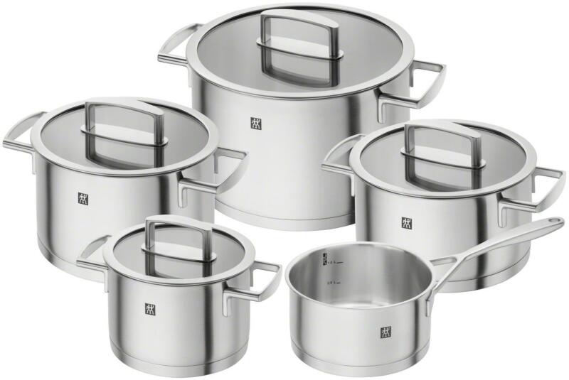 A ZWILLING® Quadro sorozat 5 részes edénykészlete három 16, 20 és 24 cm átmérőjű edényből, egy 20 cm-es edényből és egy 16 cm átmérőjű serpenyőből áll. Az edény kivételével minden edény szorosan illeszkedő üvegfedéllel van ellátva. Ezzel a készlettel a konyhai felszerelés szinte teljes. A sorban lévő edények SIGMA Classic talppal rendelkeznek. Rozsdamentes acélb