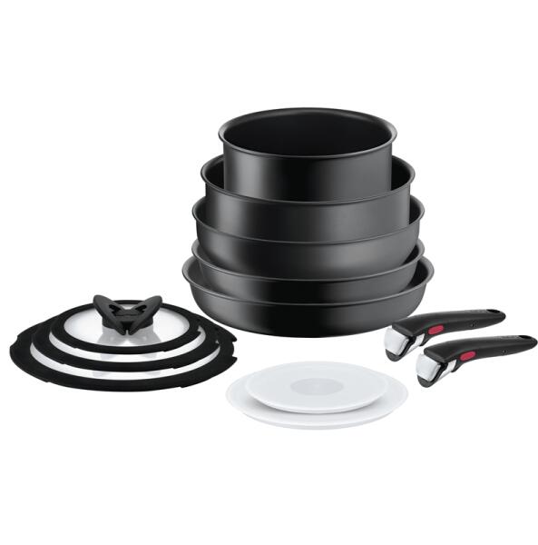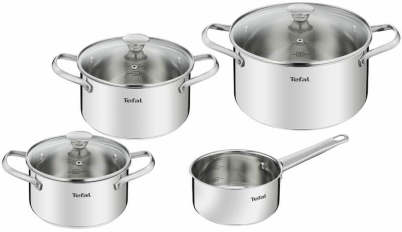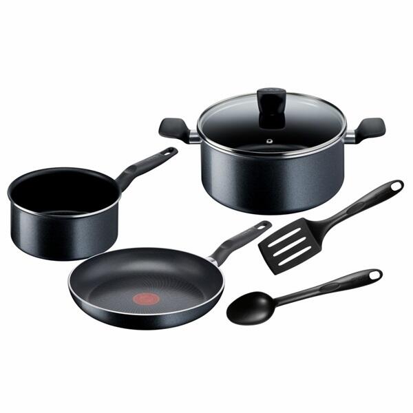Tefal Start Easy 6 db-os edény szett , fekete (C2678074). A 6 darabos Tefal Start Easy edénykészlet tartalma: Lábas fedővel (ø 24 cm, térfogat 4,5 l) Nyeles lábas (ø 18 cm, térfogat 2 l) Serpenyő (ø 26 cm) Sültfordító Kanál Jellemzők: hőforrás: gáz, villany, indukció, üvegkerámia, halogén edény / serpenyő / serpenyő anyaga: alumínium burkolat anyaga: üveg belső felül