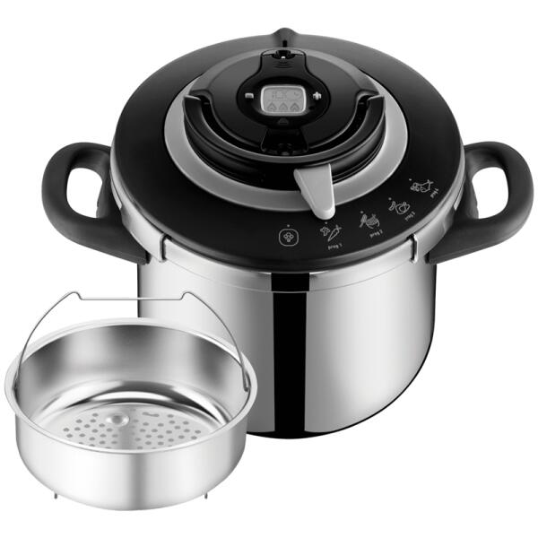Főbb jellemzők Főzzön gyorsabban, egészségesebben és ízletesebben Papin-fazékkal, más néven kedvenc kuktával! A rozsdamentes acélból készült, 8 literes Tefal Clipso+ CHEF P4551431 robusztus és tartós kivitelű, amely lehetővé teszi a mindennapos főzést hosszú éveken át. Hogy ne kelljen aggódnia a kuktában való főzés miatt, a Tefal Clipso+ CHEF 6 szintű biztonsági re