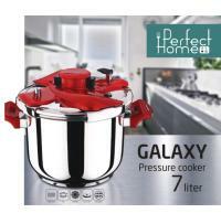 Perfect Home Galaxy gyorsfőző kukta 7L (50143) Anyaga: rozsdamentes acél, műanyag Mérete: 23,5 cm külső átmérő; 34,5 cm széles fülekkel; 20,5 cm magas; 26 cm magas fedővel Űrtartalma: 7 liter Használható: gáz-, elektromos-, kerámialapos-, és indukciós tűzhelyen Tisztítása:semleges folyékony mosogatószerrel mossa el! Kerülje a karcosodást okozó szerek és eszközök hasz