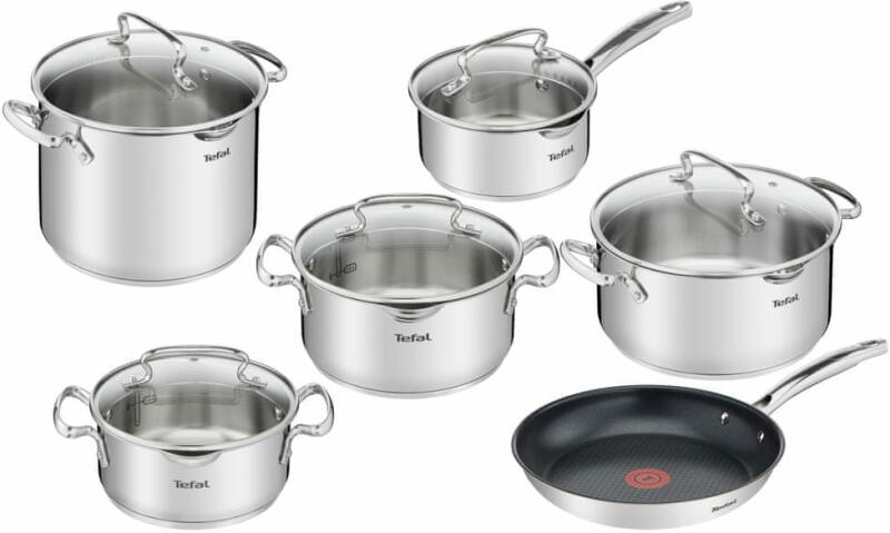 Gyártó: Tefal Modell: Duetto+ 11 pcs (G732SB55) Leírás: A Tefal Duetto+ sorozat négy fedeles lábasból, egy nyeles lábosból és egy serpenyőből álló készlete nemcsak a minőségi anyagokkal és kidolgozással tűnik ki, hanem az okos megoldásaival is, mint például az egyedi szűrőrácsos fedők vagy a praktikus kifolyók minden lábasnál. A belső szintjelző skála tovább növe