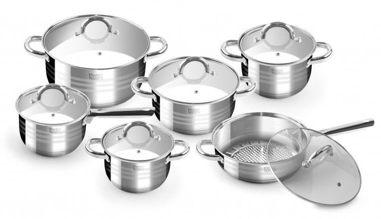 Perfect Home 53078 Deluxe 12 részes rozsdamentes edénykészlet üvegfedővelIgazán elegáns és nagyon jó minőségű rozsdamentes edénykészlet lehet most az Öné jó áron. A rozsdamentes edények könnyen tisztíthatók, nem sérülékenyek, bírják a strapát, nem véletlenül használják az ipari konyhákban is. A Perfect Home Deluxe edénykészlet vastag alsó része meggátolja az