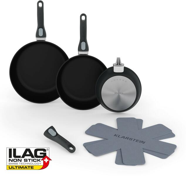Legyen szó tükörtojásról reggelire, ropogós, kiadós sült krumpliról vagy szaftos steakről: a Klarstein Noto Endurance serpenyő készlettel mindig kéznél van a megfelelő serpenyő és választhat a tartós serpenyő készletből svájci prémium minőségű kivitelben. A kerámiaerősítéssel ellátott, háromrétegű tapadásmentes ILAG Ultimate felületnek köszönhetően minden eg