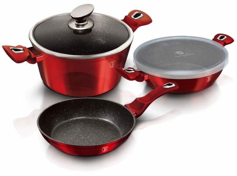 Anyaga: kovácsolt alumínium A szett tartalma: Serpenyő O24*4,8 cm 1,7L Lábas fedővel O24*11,8 cm 4,1L Alacsony lábas O24*6,5 cm 2,3L 1 db műanyag fedél Színe: burgundiTermék részletekA Metallic Line Burgundy Edition 5 részes edénykészlet egy elegáns és praktikus választás minden modern konyh