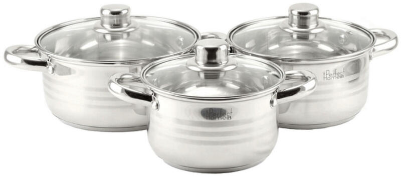 Star 6 részes rozsdamentes edénykészlet üvegfedővel Rozsdamentes acél edénykészlet. Bármilyen tűzhelyen használható, legyen az gáz-, indukciós-, vagy elektromos főzőlap. Ez a minőségi, konyhai edénykészlet három fazekat tartalmaz fedőkkel: 2 literes, 2,5 literes, 3 literes. Rozsdamentes acél edénykészlet. Bármilyen tűzhelyen használható, legyen az gáz-, indukciós-, v