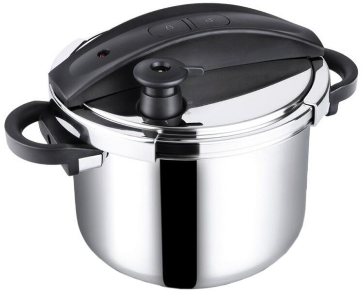 ŰRTARTALOM 6L ÁTMÉRŐ 22cm MÉRETEK 34 x 23,5 x 23cm ANYAG acél 18/10 / műanyag SZÍN acél / fekete ŰRTARTALOM 6L ÁTMÉRŐ 22cm MÉRETEK 34 x 23,5 x 23cm ANYAG acél 18/10 / műanyag SZÍN acél / fekete Pression kukta 6l A Pression kukta csúcsminőségű 18/10 nemesacélból és nagy ellenálló képességű műanyagból készül Az egyszerűen kezelhető fedél gombokkal történő nyit