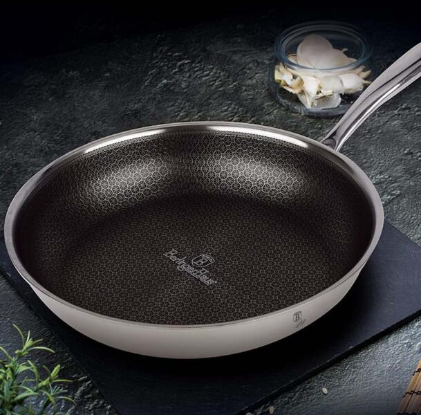 Gyártó: Berlinger Haus Modell: BH/1252N 24 cm Leírás: A Metallic Line Burgundy Edition Serpenyő (24 cm) egy elegáns stílusú, 3 rétegű márvány bevonattal ellátott edény, amely tökéletes választás minden modern konyhában. Ez a 24 cm-es serpenyő kovácsolt alumíniumból készült, és a Metallic Line Burgundy Edition termékcsalád tagjaként egyedülálló külső metál bevonat