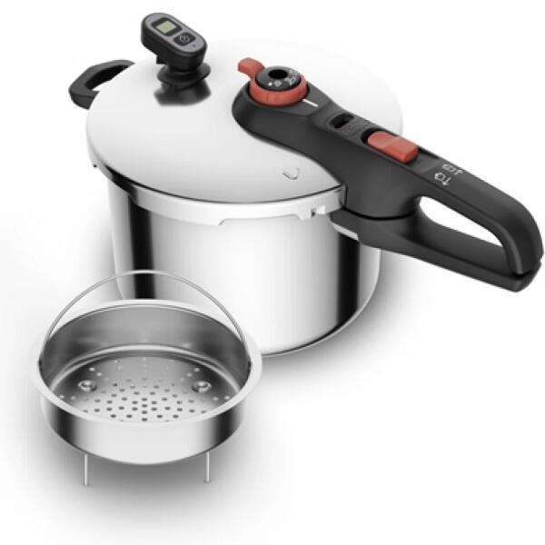 A Tefal P2590701 Secure Chrono 6 l kukta a modern konyha elengedhetetlen kelléke, amely gyors és hatékony főzést tesz lehetővé. Az edény 6 literes űrtartalma ideális választás nagyobb családi étkezésekhez vagy baráti összejövetelekhez. Kialakítását tekintve a rozsdamentes acél és műanyag kombinációja biztosítja a tartósságot és a kényelmes használatot. Az inox-feket