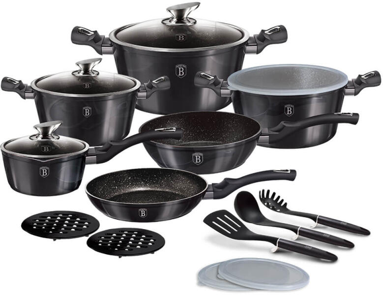 A 18 részes Metallic Line Carbon Edition edénykészlet kiváló választás a modern konyhák számára, amely eleganciát és funkcionalitást ötvöz. A kovácsolt alumíniumból készült edények 3 rétegű márvány bevonattal vannak ellátva, amely megakadályozza az ételek odatapadását és könnyen tisztítható. Az ergonomikus puha nyéllel és a turbó indukciós talppal rendelkező