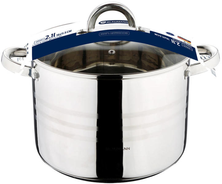 Blaumann Gourmet line BL-1013 rozsdamentes indukciós fazék üvegfedővel 30 cm A Blaumann rozsdamentes edényeinek széles választékát a legkisebbektől a legnagyobb méretekig kiváló ár-érték arány jellemzi. Kezdő otthoni szakácsok, háziasszonyok, frissen összeköltözők, hobbiszakácsok is elérhető áron korrekt minőségű otthoni főzőedényeket találhatnak a Blaumann kín