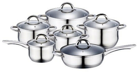 12 részes edénygarnitúra Rozsdame ntes acél edénykészlet. Mosogatógépben mosható. Minden főzőfelületen használható. Szett tartalma: Nyeles lábas 16x10,5cm/1,9l Lábas 16x10,5cm/1,9l Lábas 18x11,5cm/2,6l Lábas 20x12,5cm/3,7l Lábas 24x14,5cm/6,2l Serpenyő 24x7,5cm + 6db üvegfedő.