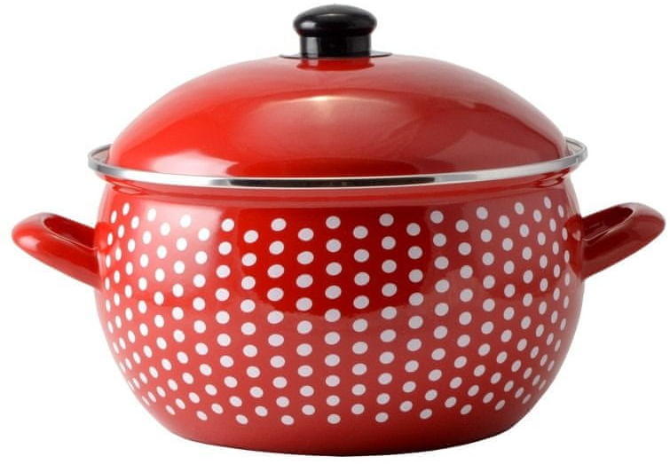 Zománcozott, retró hatású, hagyományos edény házias megjelenéssel. Bármilyen tűzhelyen használható, legyen az gáz, indukciós, vagy elektromos. Minőségi, konyhai edény fedővel. Bármilyen étel elkészítéséhez használható, ami edényben, a tűzhelyen készül. Zománcozott, retró hatású, hagyományos edény házias megjelenéssel. Bármilyen tűzhelyen használható, legye