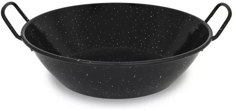 Készítse el kedvenc spanyol ételét autentikus módon a zománcozott vas paella serpenyővel! Ez a 26 cm átmérőjű serpenyő ideális családi adag paella elkészítéséhez, és egyenletes hőelosztást biztosít a tökéletesen főtt rizs és ropogós zöldségek érdekében. Jellemzői: Zománcozott vas: A zománcozott vas felület tartós és ellenálló a karcolásokkal, kopással és a
