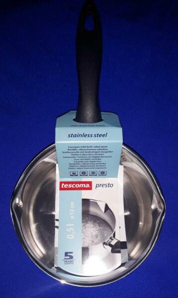 Kiváló minőségű rozsdamentes acélból készült tejforraló, két oldalán kifolyóval, nyéllel. Űrtartalma: 0,5 liter, átmérője: 12 cm.