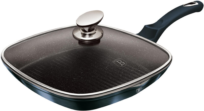 A Metallic Line Aquamarine Edition Grill serpenyő fedővel (28 cm) egy tökéletes választás a modern konyhák számára, amely eleganciát és praktikumot ötvöz. A kovácsolt alumíniumból készült serpenyő Ø28*4,1 cm méretű, 2,1 liter űrtartalommal rendelkezik, így ideális méret a grill ételek elkészítéséhez. Főbb tulajdonságok és előnyök Anyag A kovácsolt alumínium an