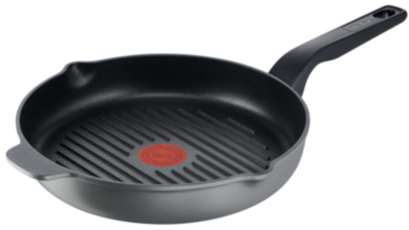 Tefal XL Force grill serpenyő 26cm, fekete (C6854055) Méret: 26 cm Anyag: öntött alumínium Hőforrás: gáz – elektromos – kerámia – halogén Sütőben is használható, 175°C-ig Tisztítás: mosogatógépben mosható Belső bevonat neve: titanium Belső bevonat/kivitel: tapadásmentes Thermo-Spot (hőindikátor) Külső bevonat/kivitel: tapadásmentes bevonat Külső bevonat színe: