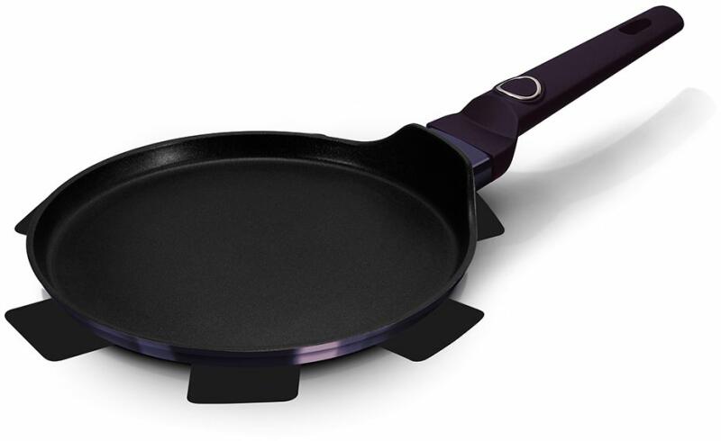 Gyártó: Berlinger Haus Modell: BH/7131 Leírás: A Palacsintasütő (28 cm) a Purple Eclipse Collection tagja, mely az elegáns stílus és a környezetbarát jellemzők ötvözésével ideális választás modern konyhákba. A kovácsolt alumíniumból készült sütő Ø28 cm méretű, és 3x tartós tapadásmentes titán bevonattal rendelkezik, amely biztosítja az egyenletes hőeloszlást é