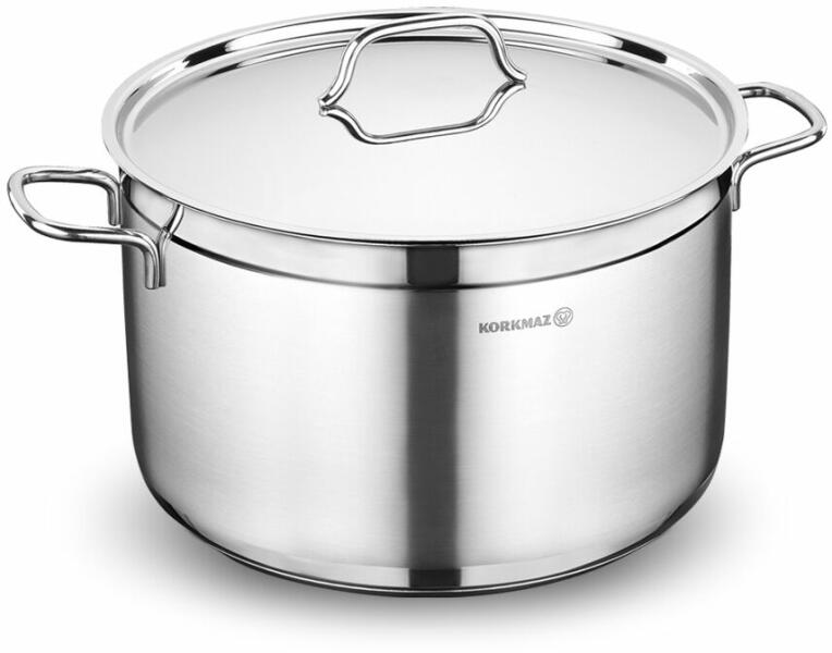 Rozsdamentes acél fazék fedővel Korkmaz Alfa 18/10 Cr-Ni rozsdamentes acélból készült Alfa edények rozsdamentes acél fogantyúkkal és fedővel készülnek. A 3 rétegű Solar Base talprendszer a legmagasabb hőátadást biztosítja minden típusú főzőlapon, ezáltalmaximális idő- és energiamegtakarítást biztosít. Használható indukciós, gáz, elektromos, kerámia főzőlapokon