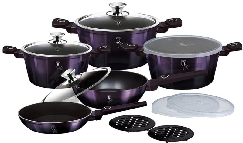 A Purple Eclipse Collection egy 13 részes edénykészlet, ami kiváló választás a modern konyhák számára. A készlet eleganciát és praktikumot ötvöz, így ideális választás minden háztartás számára. Főbb tulajdonságok és előnyök AnyagAz edénykészlet kovácsolt alumíniumból készült, amely hosszú élettartamot és egyenletes hőeloszlást biztosít. Emellett környezetb