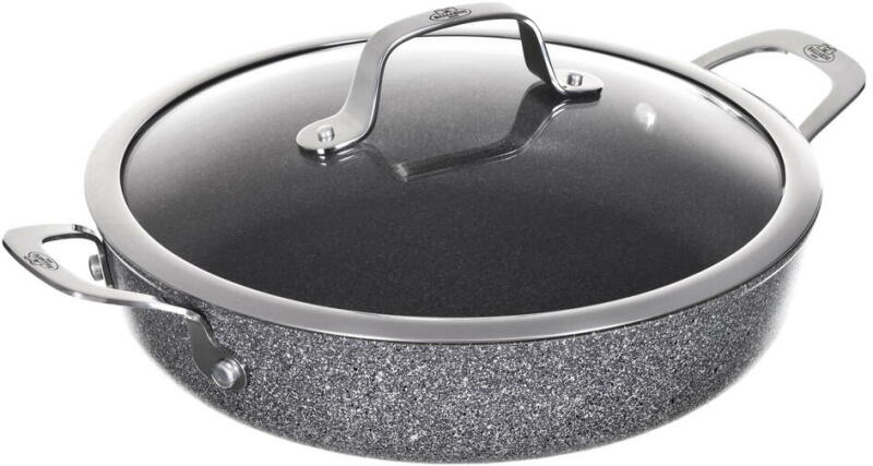 A mély, üvegfedeles Ballarini Salina Granitium serpenyő egy olyan edény, amely nemcsak a finom ételeket, hanem az egyszerűen közös pillanatokat, a továbbfejlesztett, közvetlenül felszolgált ételeket is garantálja az egész családnak. Az olasz tészta és rizs tökéletesen válogatott kiegészítőkkel a legfiatalabb ínyenceket is elragadtatják. Gránit megjelenésével minden asz