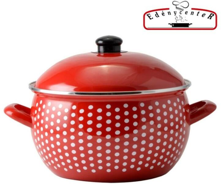 Pöttyös Zománcozott lábas 4,8L Zománcozott, retró hatású, hagyományos edény házias megjelenéssel. Bármilyen tűzhelyen használható, legyen az gáz, indukciós, vagy elektromos. Minőségi, konyhai edény fedővel. Bármilyen étel elkészítéséhez használható, ami edényben, a tűzhelyen készül. Zománcozott, retró hatású, hagyományos edény házias megjelenéssel. Bármil
